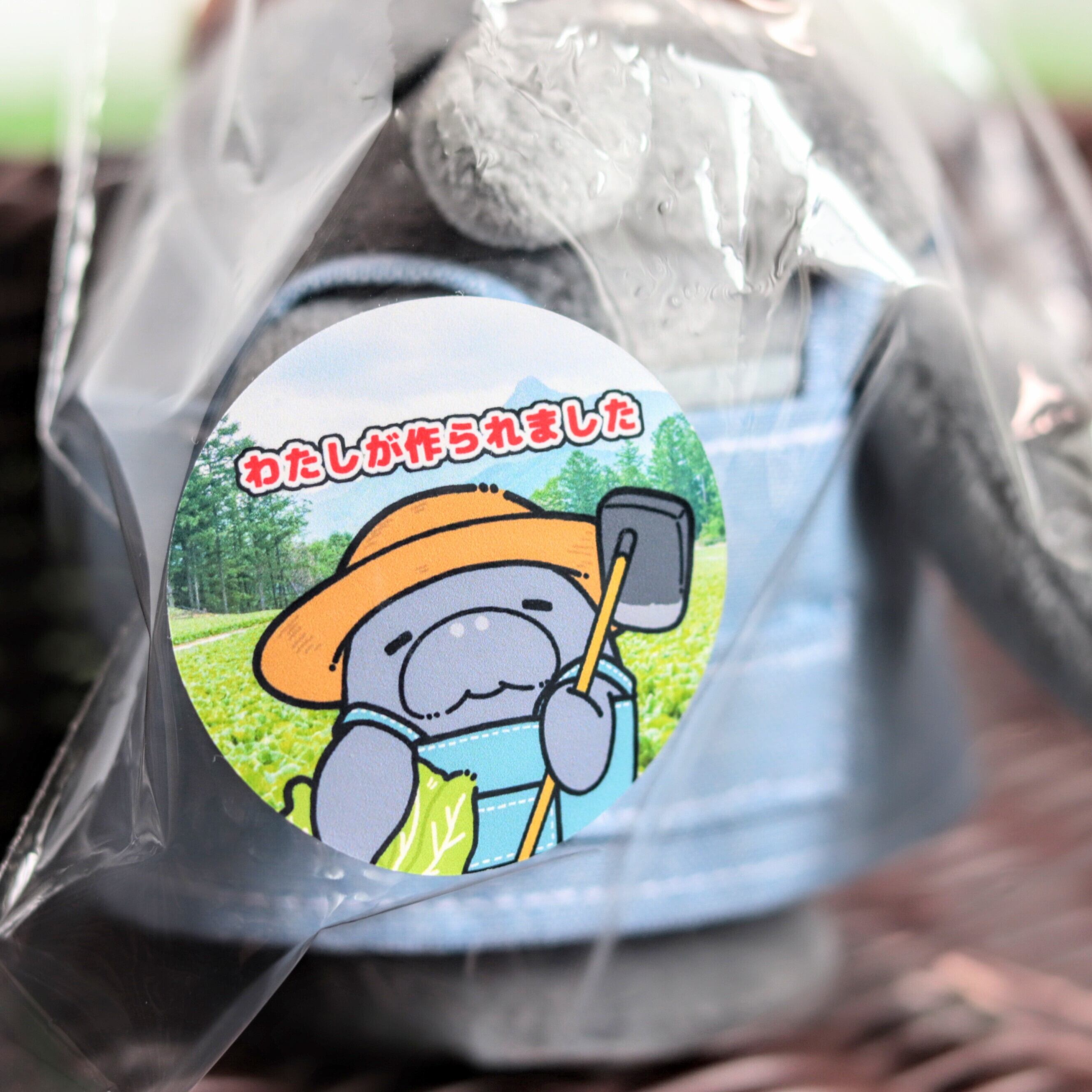 おっとりマナティーさんのぬいぐるみマスコットとおきがえ農作業セットです。